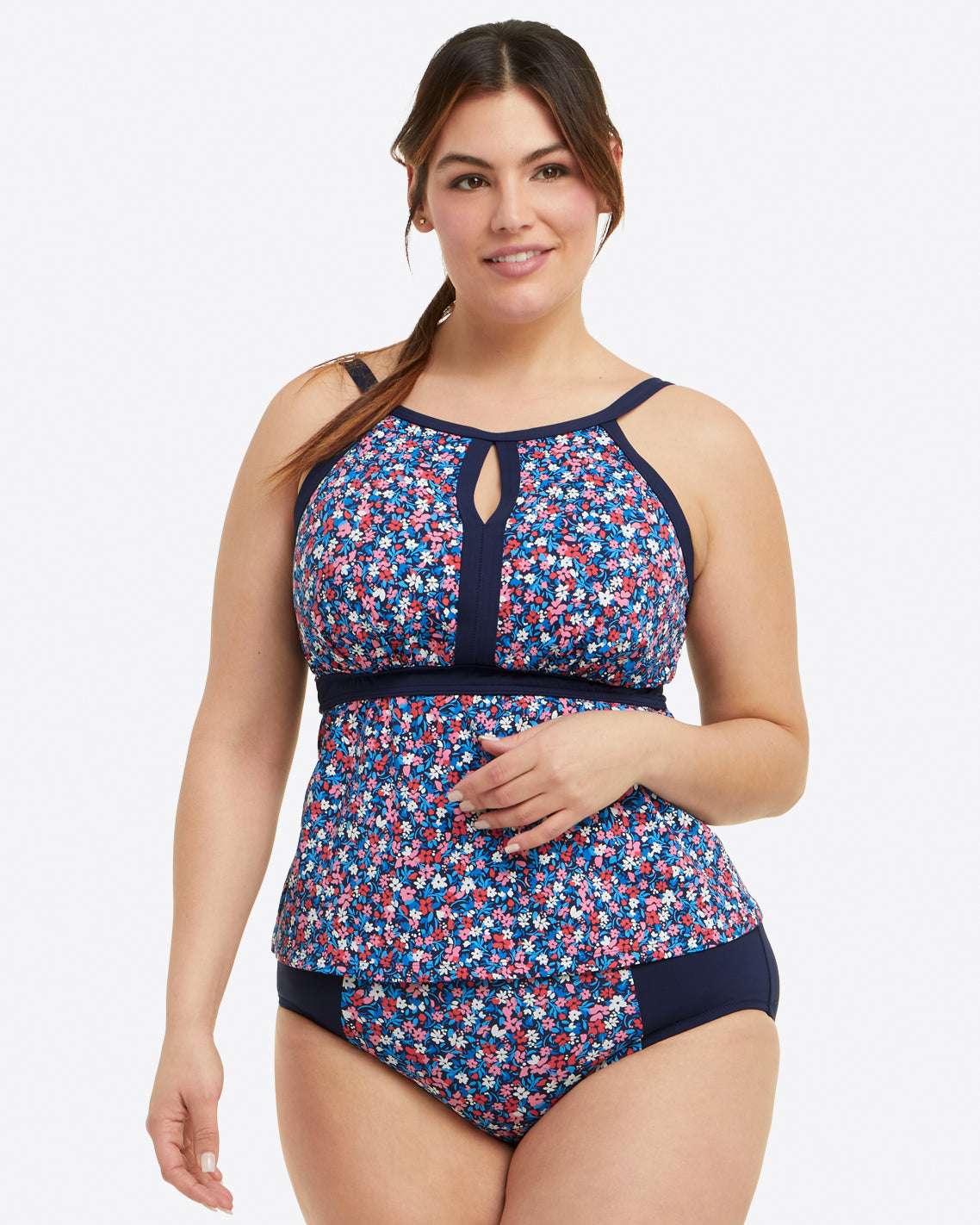 Key to a great look. Straight or curvy, large chest or small, there?s a little magic in this keyhole tankini. It showcases shoulders like a halter, but without the neck pressure. The empire waist flatters so many shapes. The fabric has built-in UPF 50 protection so you can play in the rays without worry, and it comes in classic prints exclusive to our partnership with Land’s End.